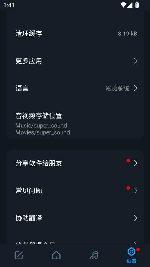 3、所有编辑完成的音频文件将自动保存至我的设置”中,清晰显示存储路径,方便随时查找与管理。