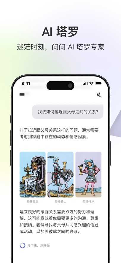 此外,应用内置每日塔罗运势小组件,为你开启充满能量的一天;所有对话内容严格保密,确保你在安全、私密的环境中自由倾诉与探索。