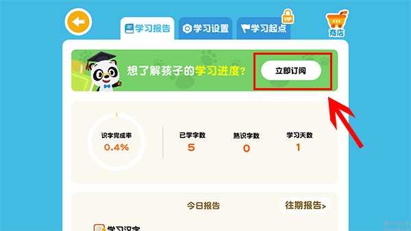 验证成功后进入家长中心,点击学习报告”页面右侧的立即订阅”按钮。此时需跳转至客户端完成订阅操作,即可定期接收孩子详细的学习进展报告,随时掌握学习动态。