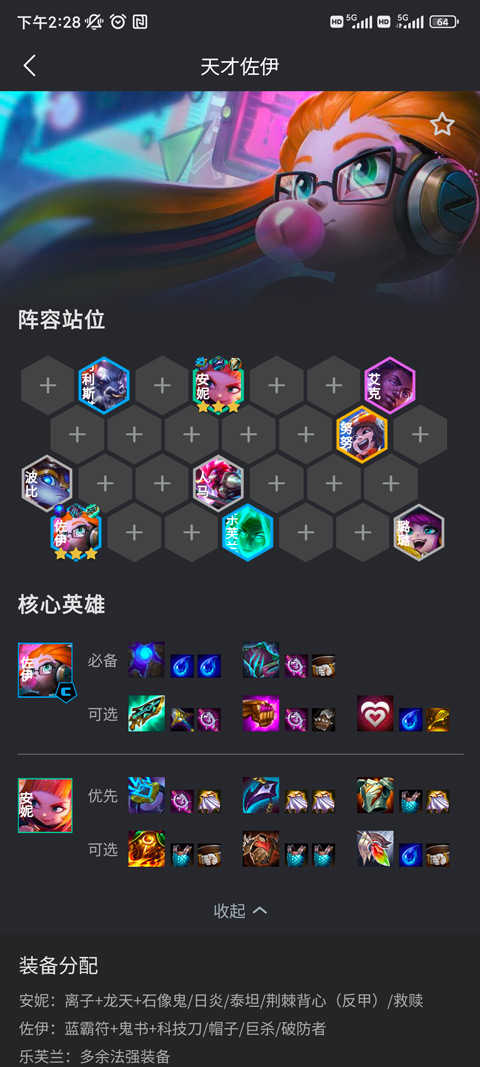 2、在阵容详情页,可查看完整的站位布局、核心英雄、装备分配建议、当前激活的羁绊效果以及推荐的强化符文。
