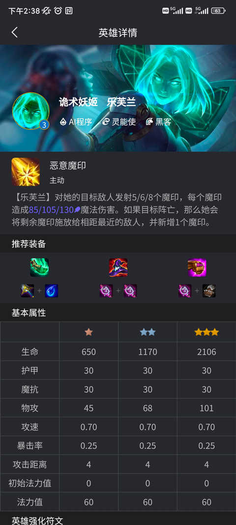 3、详尽展示每位英雄的蓝量、技能伤害、装备适配等关键数据;