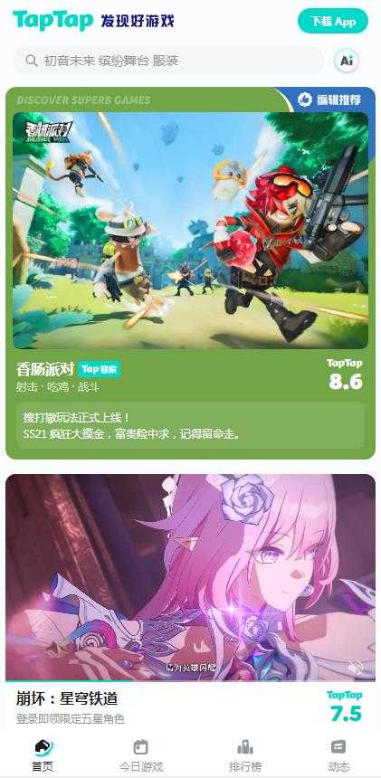 taptap游戏平台是一款非常受大家欢迎的手机游戏下载平台,这里为广大用户提供非常丰富的海内外游戏资源,包括香肠派对等多种热门游戏,这里每天还会更新各种游戏的最新信息,让你随着掌握游戏的最新动态变化,还可以在线和其他玩家交流哦。
