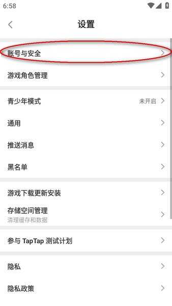 然后选择账号与安全”;