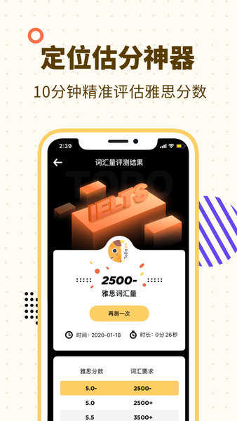 2、定位测评:为用户提供全面的英语能力测评,让用户能够了解自己的实际英语能力,制定更好的备考计划和策略。