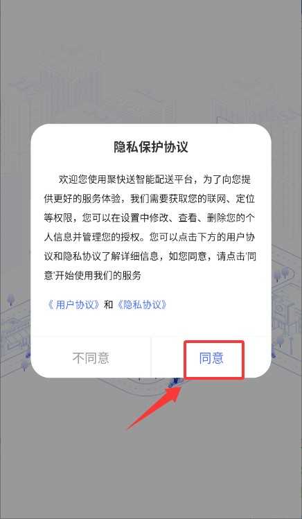 1、在隐私保护协议窗口点击"同意",代表接受用户协议与隐私条款。