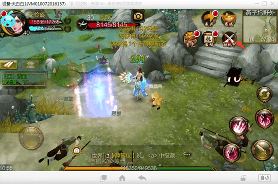4、进入游戏后,选择适合的任务、地点,点击游戏界面内自带的挂机按钮,即可实现角色托管自动打怪。