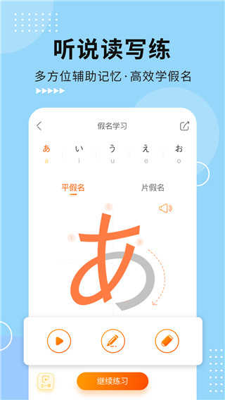 手写日本语:动态笔顺、假名描红,掌握日语50音基础。