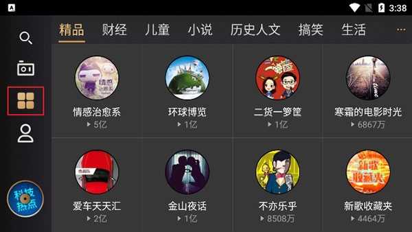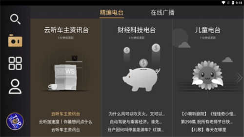 点击界面左侧的专属入口,还能探索更多分类清晰的电台故事内容,如悬疑小说、历史评书、儿童启蒙等。