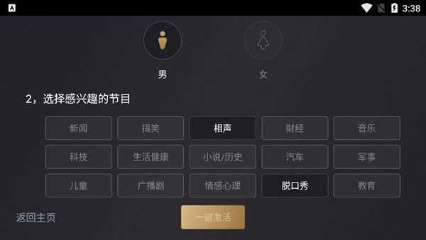 首次使用听伴车机版非常简单:在本站下载安装后,打开应用只需选择你感兴趣的节目类型和性别偏好,即可一键激活个性化推荐服务。