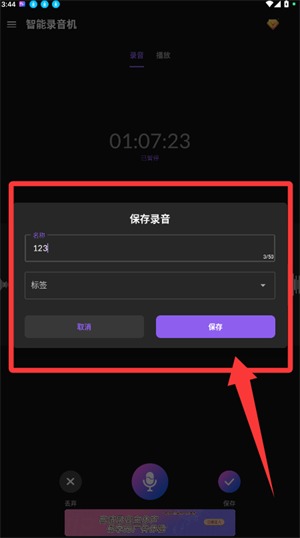 3、录音结束后,输入文件名称并确认保存,音频将自动存储至本地指定目录。