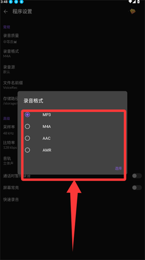 3、从列表中选择所需格式(如MP3、AAC等),确认后新录音将自动采用该格式保存。