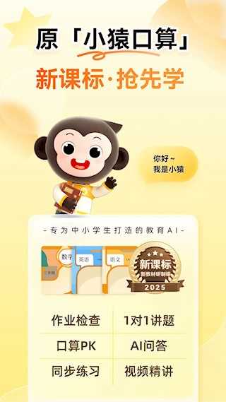 小猿AI智能批改作业版是一款专为小学生打造的智能学习助手,以“拍照批改 + AI讲题”为核心功能,全面覆盖小学数学、语文、英语等主流学科的常见题型。它不仅能快速识别作业对错、精准分析错误原因,还能自动归集错题,帮助学生高效查漏补缺。同时,应用内嵌同步练习、预习资源与班级管理工具,既支持学生自主学习,也赋能教师精准教学,真正构建“学—练—改—复”的完整学习闭环。