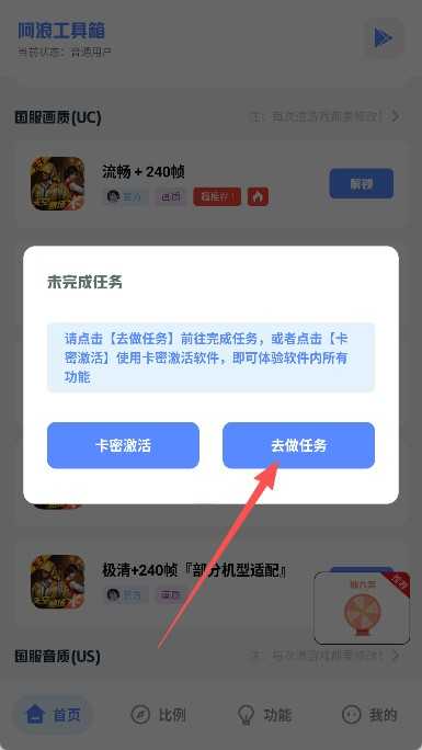 4、系统将弹出任务窗口,点击去做任务”并完成指定操作,即可激活所选画质设置。