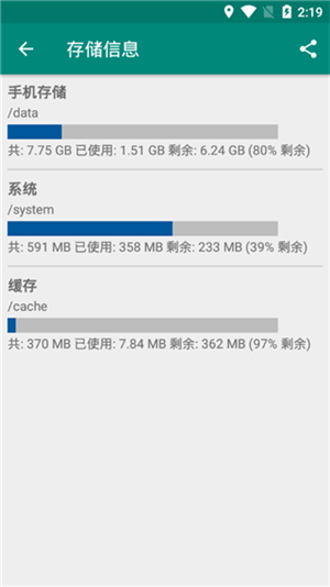 10、显示内部存储、SD卡和SD卡第二分区的可用空间信息。