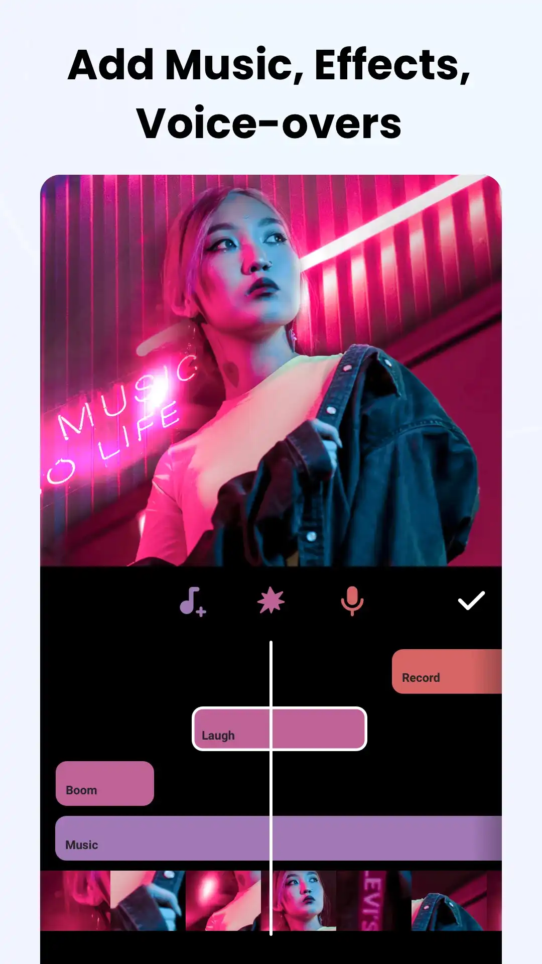 内置丰富版权音乐库,同时支持导入本地MP3音频;多轨道编辑功能让你自由叠加背景音乐、配音与音效,并可精细调节每轨音量、设置淡入淡出效果。