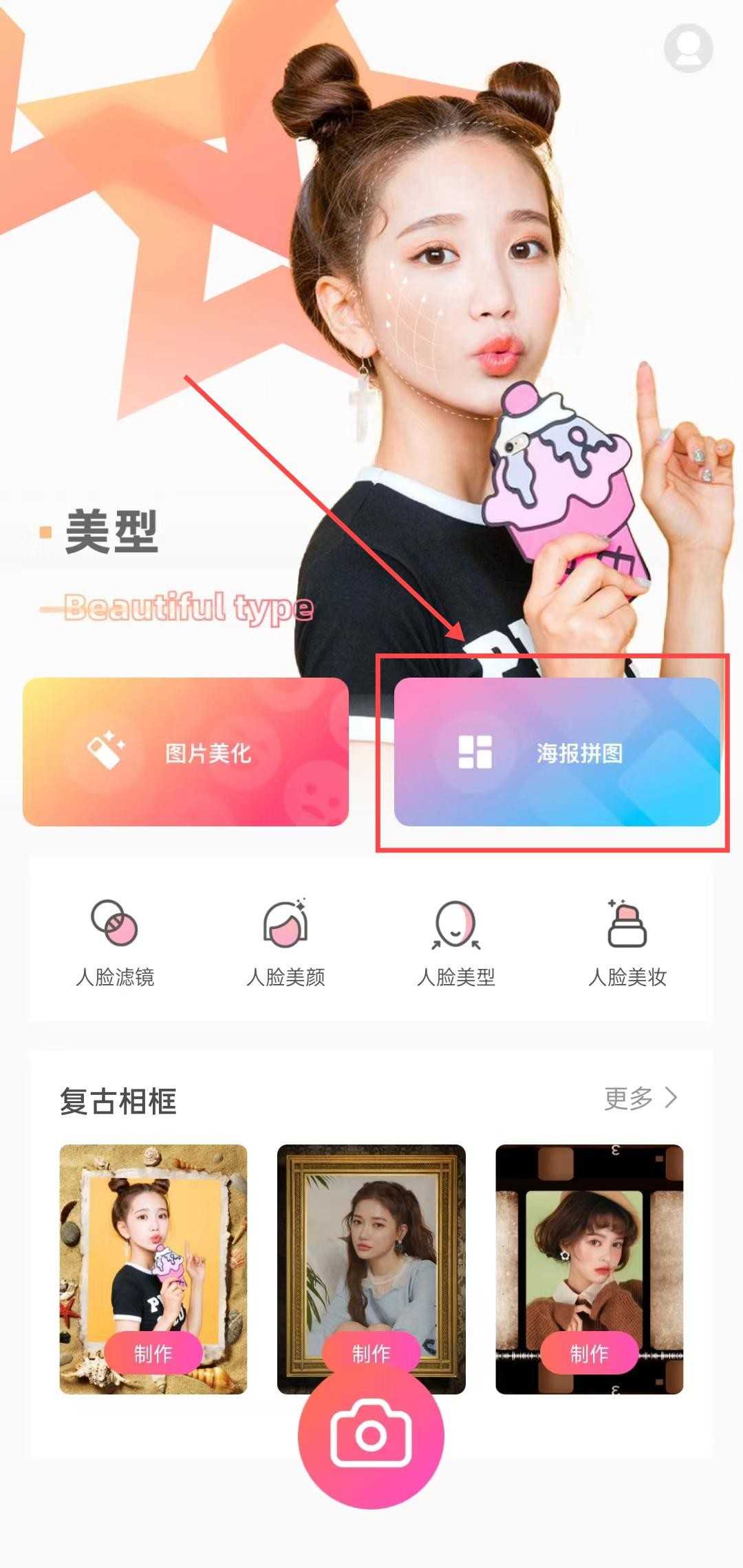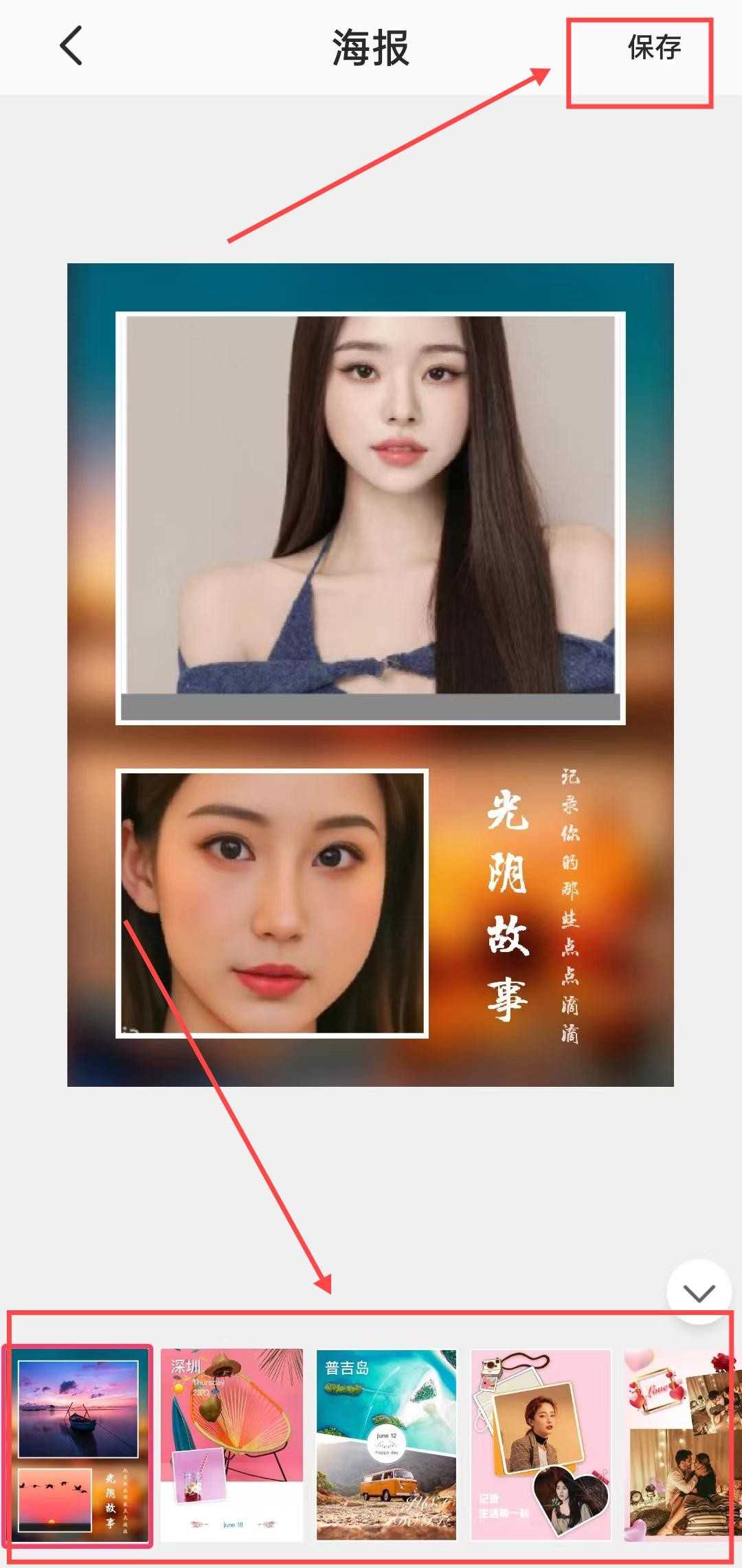 进入首页后,点击海报拼图”,选择两张或更多照片进行组合编辑。