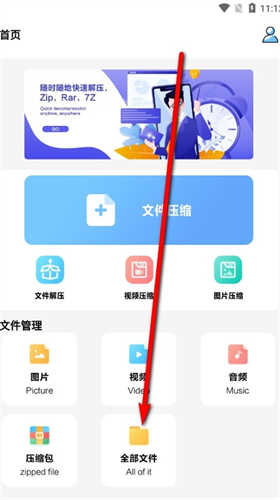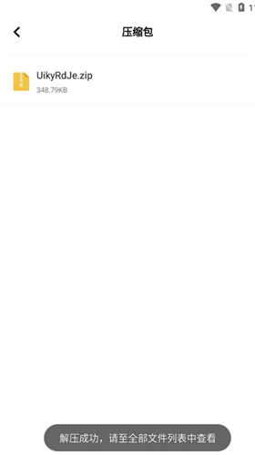 4、解压成功后,页面会提示请至全部文件列表中查看”,此时返回首页。