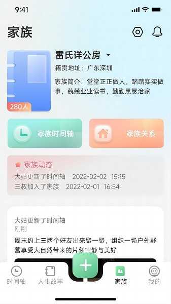 家族圈:强化家庭连接,支持创建家族成员档案、共享时间轴、设置重要事件提醒,并智能梳理亲属关系,成为代际情感传承的数字桥梁。