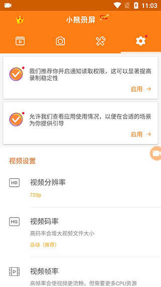 小熊录屏旧版支持最高1080P甚至更高分辨率的屏幕录制,配合高达12Mbps的码率与60帧/秒的流畅帧率,确保每一帧画面都清晰细腻,特别适合对画质有高要求的用户。