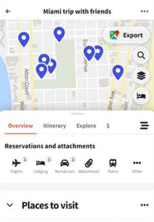 借助内置的交互式地图(基于 Google Maps),您可以直观地查看整个行程路线,通过拖放操作轻松调整日程顺序,让规划变得像整理待办事项一样简单。