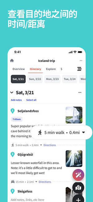 2. 无需跳转多个应用,从预订整合到路线规划,全部在 Wanderlog 内高效完成。