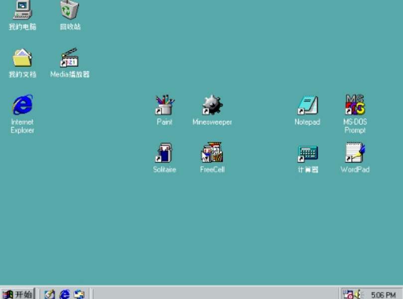 加载完成后,完整的Windows 98桌面呈现在眼前,图标排布、窗口样式、系统字体均忠实还原,复古感扑面而来。