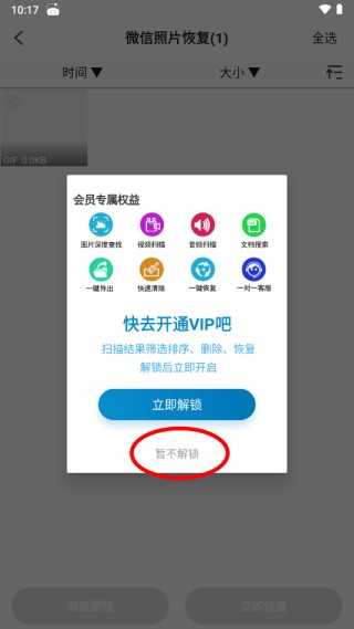 授权完成后,点击暂不解锁”继续流程,系统将自动启动深度扫描。