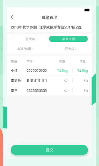 学生可随时查看当前体测任务的完成进度,清晰了解已测项目与待办事项,避免遗漏。整体界面采用简约清爽的设计风格,操作逻辑清晰,视觉体验舒适,即使是初次使用也能快速上手。
