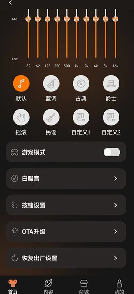 天籁音控app不仅支持实时显示左右耳机电量和连接状态,还提供专业级EQ调节功能,让你根据音乐风格或使用场景自由定制声音表现。此外,应用内置多种预设音效模式(如古典、爵士、流行等),并支持游戏低延迟模式,全面提升音频响应速度与听感层次。你还可以自定义耳机名称与按键功能,让设备管理更高效、操作更顺手。