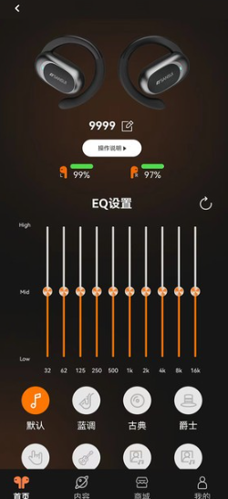 首次使用时,只需打开天籁音控app并确保手机蓝牙已开启,系统将自动识别并添加你的耳机设备。进入主界面后,即可在设置中调整均衡器参数、切换音效风格,或在设备信息页修改耳机名称,整个过程直观流畅,无需复杂操作。