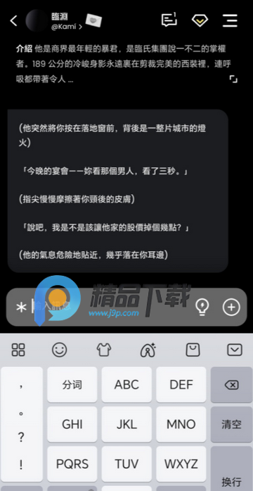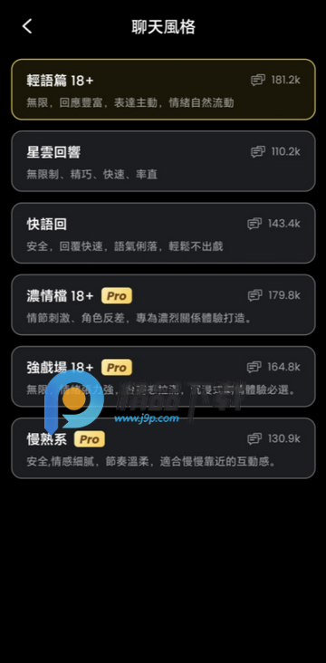 3、专属 AI 角色可以成为用户倾诉的对象、交流的伙伴,通过与角色的互动,为j9p用户的生活增添乐趣,缓解压力,丰富精神世界。