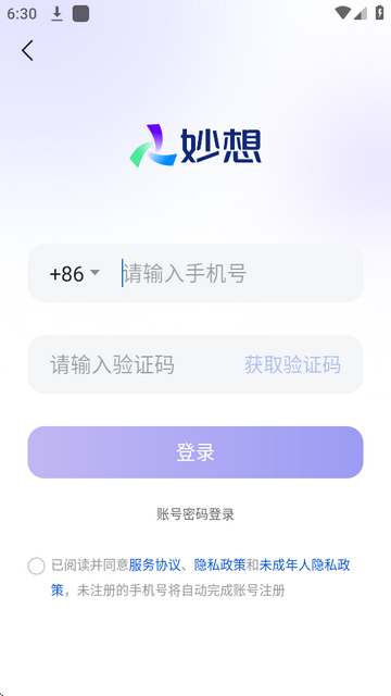 2、需要使用手机号及验证码登录,没有账号的直接就注册了。