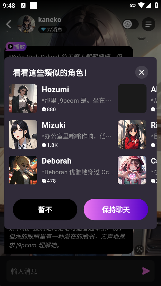 3、角色与剧情更新功能,软件会定期更新,引入新的人工智能角色和丰富的故事剧情,为用户持续带来新鲜感。