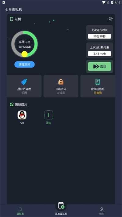 首先从本站下载并安装七星虚拟机,启动软件后进入主界面。