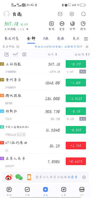 支持全市场品种添加自选股,实时关注市场动向。