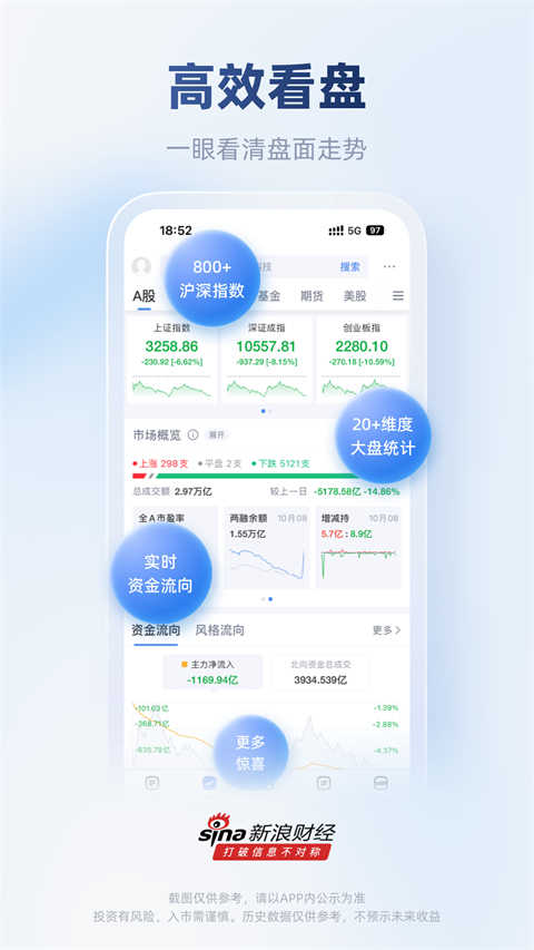 覆盖沪深港美英股市、债券、基金、期货、外汇、期权等行情。