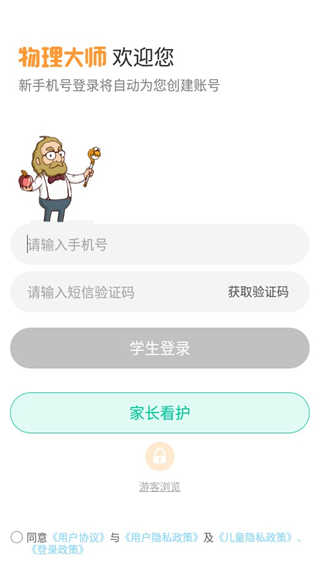 1、在本站下载安装并打开物理大师app,进行登陆。
