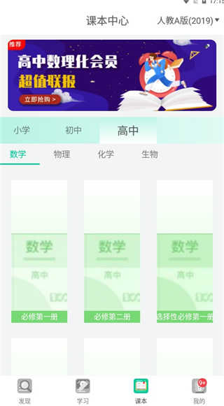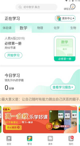 4、点击学习,用户可以看到自己正在学习的课本以及进度。