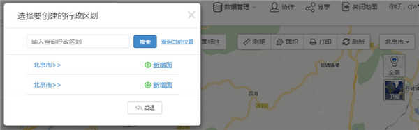 (2)输入框:输入相关的行政区名称,点击搜索”按钮即可查询到相应的行政区。如图3-6所示。
