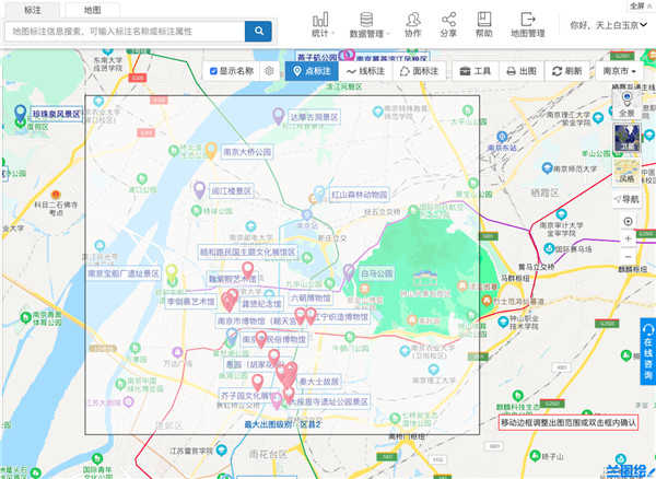 2)光标变为十字,按住鼠标左键,在地图上拖拉出出图范围,松开左键。若要再调整范围,则点住边框移动调整: