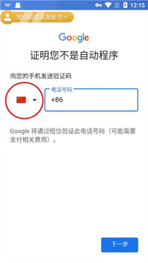 11、验证手机号,国家我们要选择中国,填写自己的手机号,点击下一步;