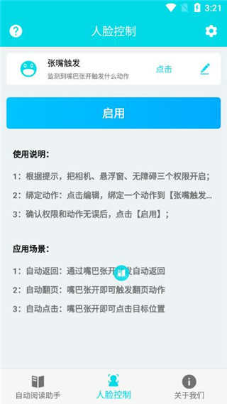 4、还能设置人脸控制,通过开启张嘴触发什么动作,在阅读的时候就能自由切换