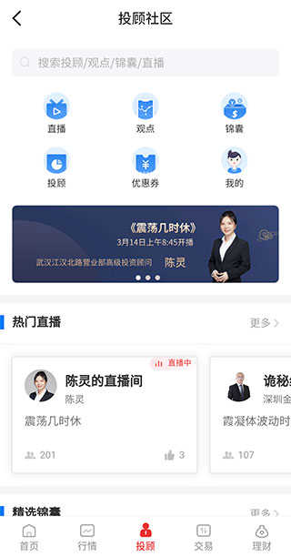 3、【投顾】也就是大家口中常说的投资顾问,这里为大家准备了许多投资顾问的讲解直播,用户可以学到不少知识。