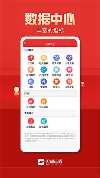 国都证券app,即国都畅赢。这是一款为投资者精心打造的一站式移动金融投资理财软件,该软件也就是人们口中常说的国都畅赢app,它可以为用户提供股票行情、交易、资讯等实用且专业的服务,让你在手机上就能一手掌握查询、交易、转账等业务,非常方便。并且软件还提供了便捷轻松的理财操作,用户可以在第一时间获得证券市场行情变化的消息,实时在线阅读资讯的内容,知晓行业的动态。然后还能在数据中心里查看详细的股票内容,包括投资机会、强弱指数和涨跌风向标等,或者了解不同股票证券详细的分析信息,随时买入和卖出股票,在线交易非常方便。此外,国都证券app还能够帮助用户清晰查看自己记录的理财产品跌涨数据,从而很好的挑选合适的理财产品,并且能够便捷投资,完全不用担心投资门槛的问题。同时软件还提供股票交易服务,里面有最新的数据分析详细显示,涨跌线形图一目了然,手机直接开户交易,t+0提现极速不等待,超低费率交易安全可靠,喜欢投资和炒股的用户可以下载使用!
