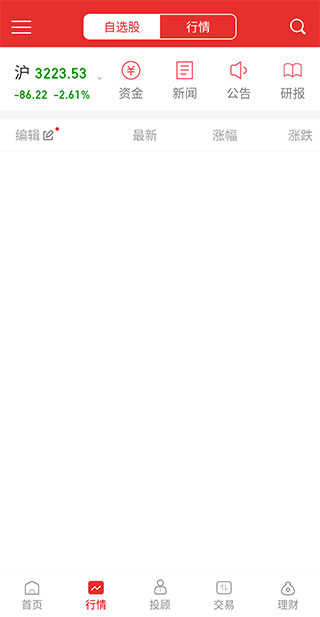 2、【行情】页面支持用户添加自选股,只需要点击左侧的编辑按钮即可,或者可以点击上方的按钮,切换至行情页面。