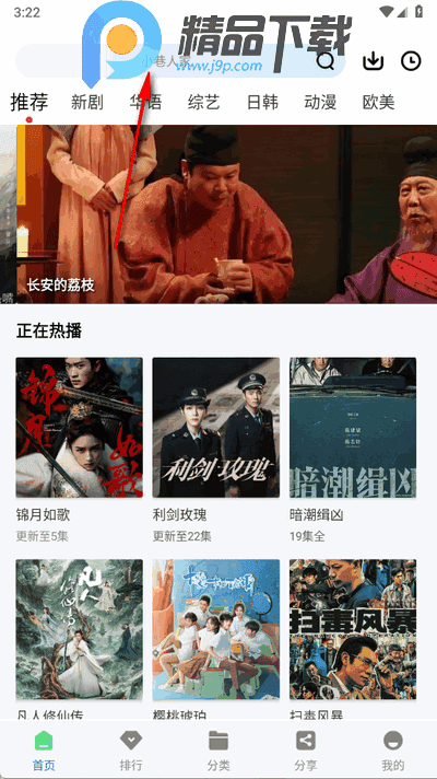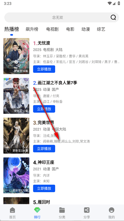 2、分类浏览与搜索:用户可以通过首页上方的分类栏选择想看的类别,或者使用搜索栏直接查找特定的影视内容,还能查看热搜榜排名。