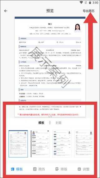 编辑完成后,进入简历预览页面,直观查看整体排版与视觉效果。平台提供多种风格模板任你切换,满意后一键导出,无缝衔接下一步操作。