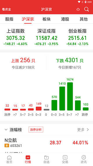 2、在【行情】页面,我们可以根据不同的分类进行具体的查看,例如股指、沪深京、板块、港股、其他等。