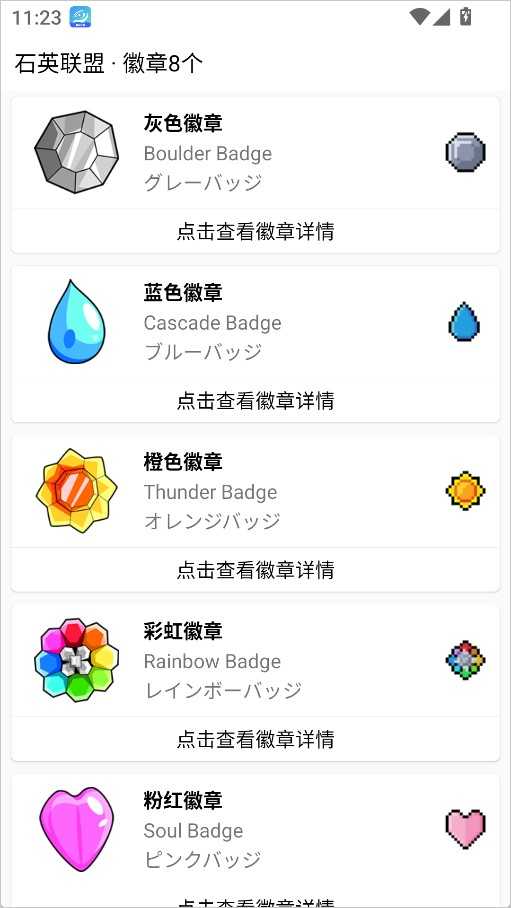 徽章一览:展示全部道馆徽章及其获取方式,助你规划挑战路线。