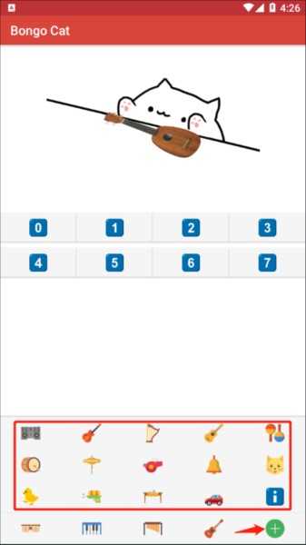 应用底部提供了四种不同类型的乐器供你自由切换,每种乐器都对应独特的音效与猫咪演奏动作,让互动更加生动有趣。